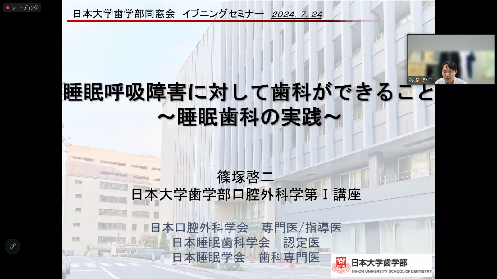 2024年7月26日(金)に行われた「睡眠呼吸障害に対して歯科ができること ~睡眠歯科の実践」